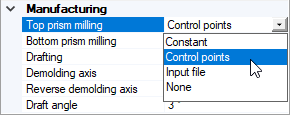 Before setting the Top prism milling and/or Bottom prism milling parameters value, define its construction mode:
