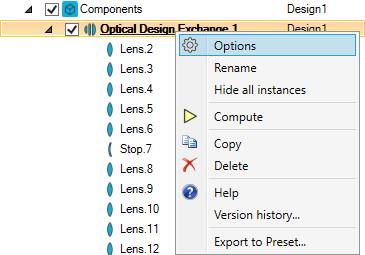 From the Simulation tree, right-click the Optical Design Exchange