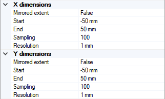 - If you want to symmetrize the sensor by linking Start and End values, set Mirrored extent to True.
