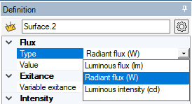 - Select Radiant Flux (W) and define its value in watts.