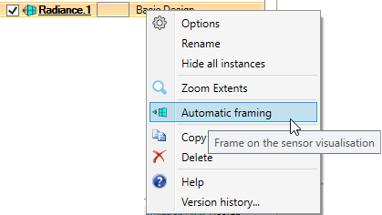 Note: Automatic framing is only available for Radiance, Human Eye, Camera, LIDAR, Observer and Immersive sensors.