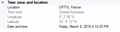 A preview of the sun and the 4 cardinal points appear in the 3D view. The sun's position is computed according to the timezone and location set.