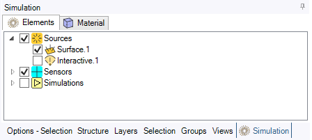 From the Simulation panel, you can visualize the features' state and control their visibility in the 3D view.