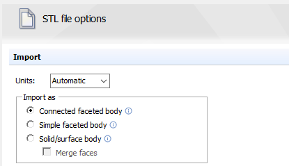 Three import options are available to import STL files in Speos. However, we recommend choosing between only two of these options.