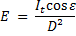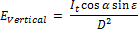 The illuminance on a point is calculated by the cosine on the angle of incidence ε. The formula is