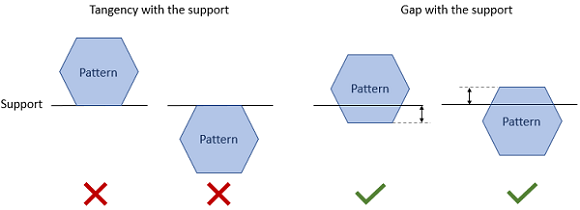 - You cannot set tangent surfaces between patterns and a support. A gap is needed and must be larger