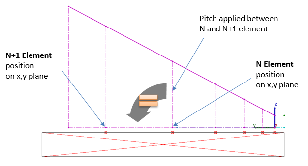 - calculate distance between two variable pitches: the distance between two elements (N and N+1) is the distance between the curve and the position of the first element (N) in the axis plane along projection direction.
