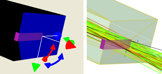 Let's take the measure area projected on a face 1, and a face 2 is perpendicular to face 1. If the measure area intersects the face 2, then the measure area is also projected on face 2, and rays that pass through face 2 are displayed, as illustrated in the image below.