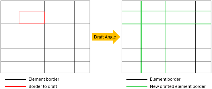 When the Draft angle is needed on an element of the grid, the Draft angle is applied on the entire row and the entire column to which the element belongs.
