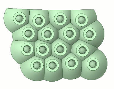 | Combined TIR Lens only mode used. No Optical Lens created. | Inner Support mode used. 3D view of an Optical Lens merged with 16 TIR Lenses |