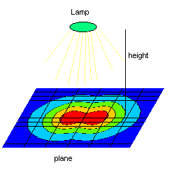 With Isolux Curve, you can view illuminance on a map for a light at a specified height, and isolux curves at a specified height on a plane.