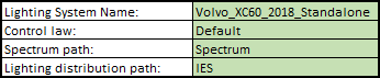 The Control law (previously programmed) is an identifier allowing you to verify if the lighting system is compatible with the corresponding Ansys AVxcelerate Lighting and Sensors Plug-In sample (C++) or Control law. |