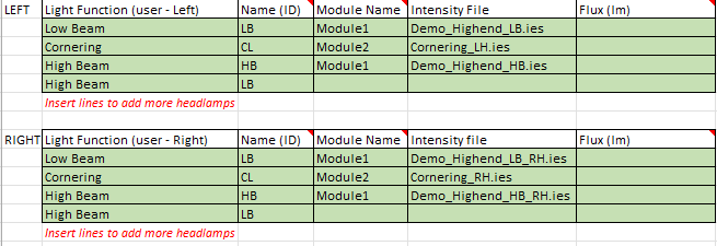 The lit appearance map is defined with a radiometric XMP file created with Ansys Speos, loaded in the Excel Template, see Configuring the Lit Appearance for Lamp Edge Detection.