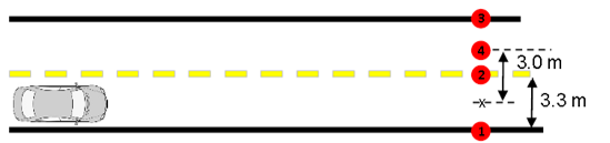 Sensor 4 is positioned in the middle of the oncoming lane and is used for the glare measurement.