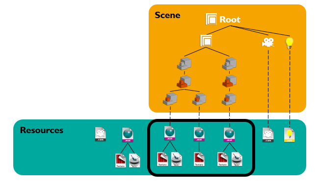 A Material library export contains all the materials, including the unused ones, and the related resources of a scene.