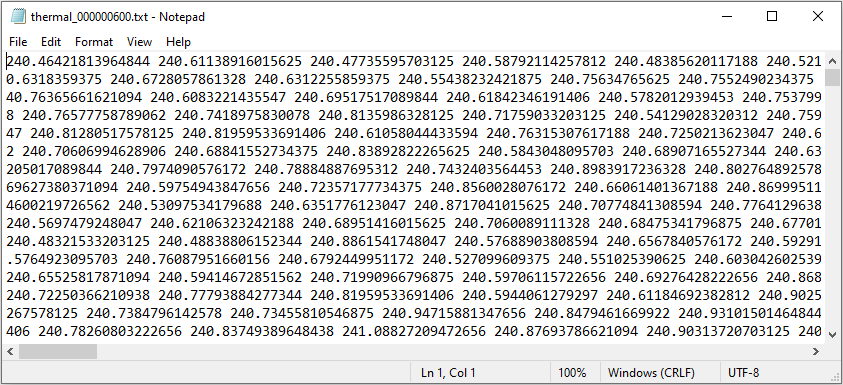 each pixel (encoded within the 0-255 range) is only meant to illustrate the temperature