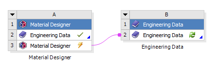 Computed materials can be passed to downstream analyses by connecting the Material Designer cell of the Material Designer component system to an Engineering Data cell. Use the following procedure to pass the homogenized material data to a downstream analysis system: