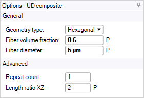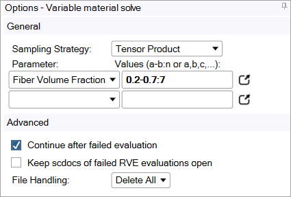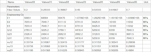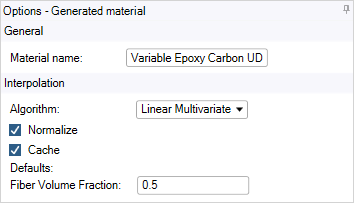 obtain results. The calculations will take a few minutes to complete.Click Generated Material in the Outline and set the Material Name to Variable Epoxy Carbon UD. In addition, set a default Fiber Volume Fraction of 0.5.