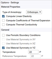 Add the following orthotropic elasticity properties: