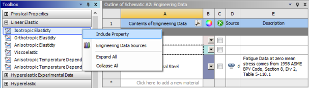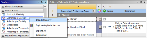 From the Toolbox on the left, add the Orthotropic Elasticity property.