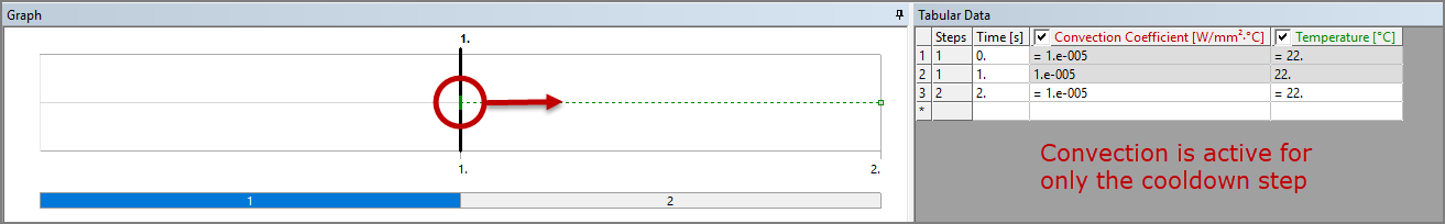 In the Tabular Data area of the interface, select the first two rows, right-click and select Activate/Deactivate at this step! which will deactivate (remove) the convection for the build step.