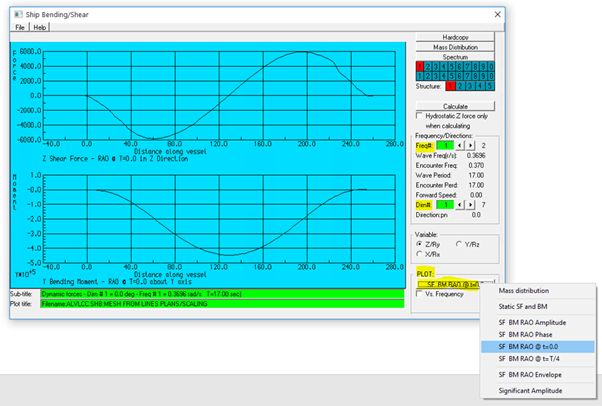 To plot the Shear Force & Bending Moment RAO at t=0.0 select SF BM RAO @t=0.0 from the PLOT button.