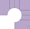 | The Punch is centered on the intersection of the Bend Lines. The Punch diameter can be changed in the Properties panel. The images show the diameter changed from 1 mm to 3 mm. |
