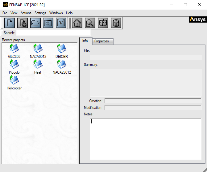 | Remove icon | Removes the project icon from the list of available projects without deleting the project directory. |