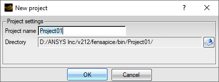 A window opens to prompt for the new project name and directory.