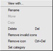| Remove invalid icons | Deletes all project icons with no associated directories. These are displayed graphically as broken folder icons. |