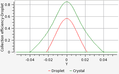 2or more processors, if possible. The run should stop due to convergence in about 130 iterations.Load the two solutions, droplet and crystal, using the button to compare the collection efficiency of droplets and crystals with the 2D plot.