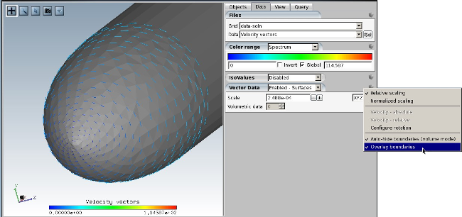 To overlay the wall boundary with the vectors, click the cube menu to the right of Vector Data box and check Overlay boundaries.