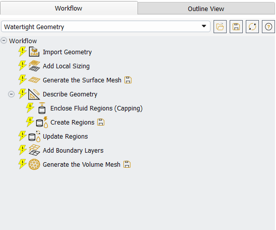 In the Workflow tab, select the Watertight Geometry workflow.