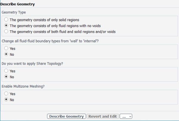 When you select the Describe Geometry task, you are prompted with questions relating to the nature of the imported geometry.