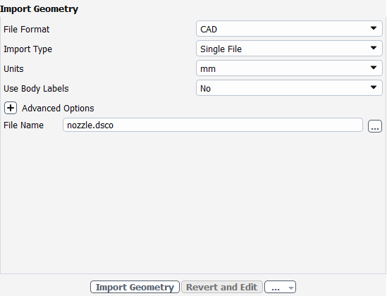For File Name, enter the path and file name for the CAD geometry that you want to import (