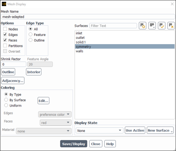 mesh-adaptedfor Mesh Name.Ensure that Edges and Faces are enabled in the Options group box.