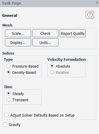 Select Density-Based in the General task page (Solver group box, under Type).