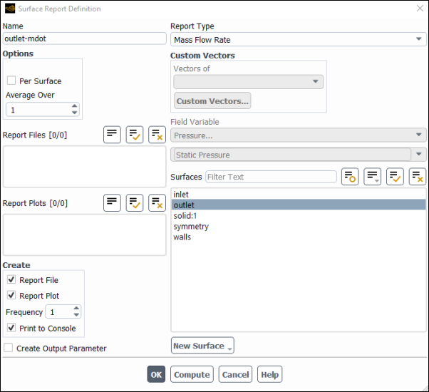 outlet-mdotfor Name.Select outlet in the Surfaces selection list.
