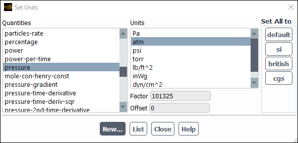 Select atm in the Units selection list.