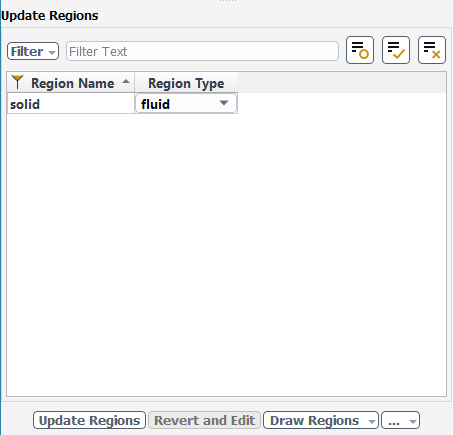 Select the Update Regions task, where you can review and change the tabulated names and types of the various regions that have been generated from your imported geometry and change them as needed.
