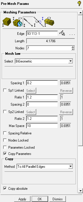 0.2for Spacing 1.Enable Copy Parameters and select To All Parallel Edges in the Method drop-down list.