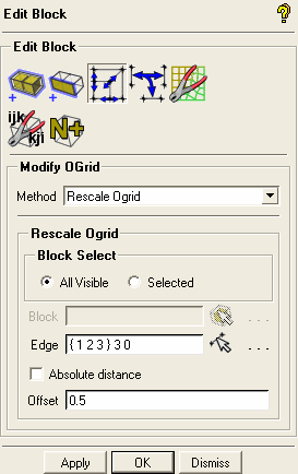 shown in Figure 62: Edge Selected for Modifying the Ogrid.Ensure that Absolute distance is disabled.