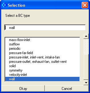 Select wall from the list of Boundary Conditions in the Selection dialog box.