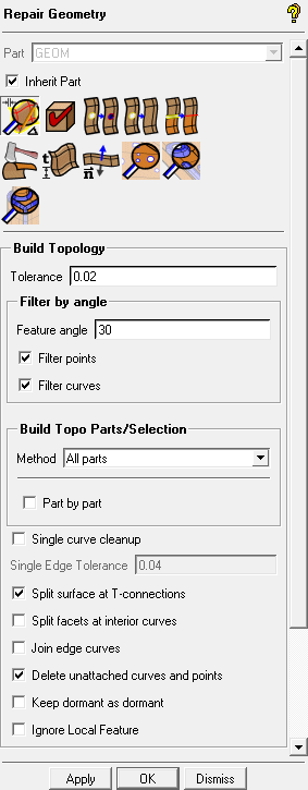 Note: The build topology establishes connectivity and places the curves in an inherited part name. This is not as critical here where only a few curves would need to be placed into a part, but could be very useful in a really large model where interactively selecting curves for parts could become tedious.