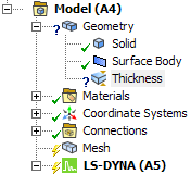 Surface body thicknesses properties can be defined on faces of surface bodies using the Thickness object in the Geometry . This keyword defines scoped surface body thickness.