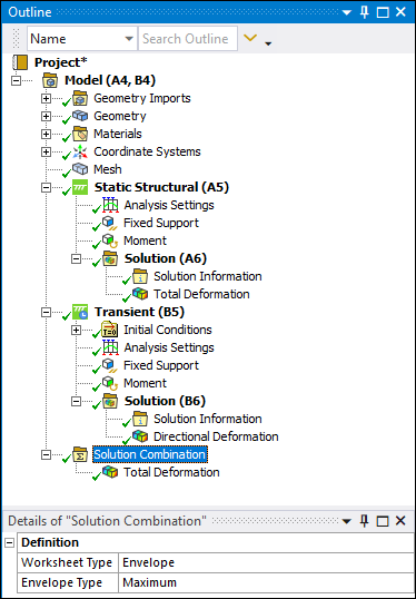 Valid Child Tree Objects: all stress and strain result objects, Directional Deformation, Total Deformation, Beam (Static and Transient Structural only), Contact Tool (only for Frictional Stress, Penetration, Pressure, and Sliding Distance), Fatigue Tool, Stress Tool (Static and Transient Structural only), Beam Tool, Comment, and Image.