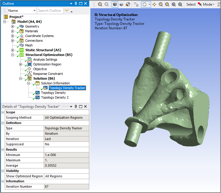 In addition, you can open the Solution Information object and select its child object, the Topology Density Tracker object (inserted automatically), as illustrated below.