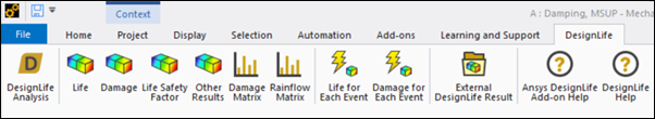 Once the add-on is loaded, the Ansys nCode DesignLife ribbon is visible, exposing all the DesignLife capabilities.