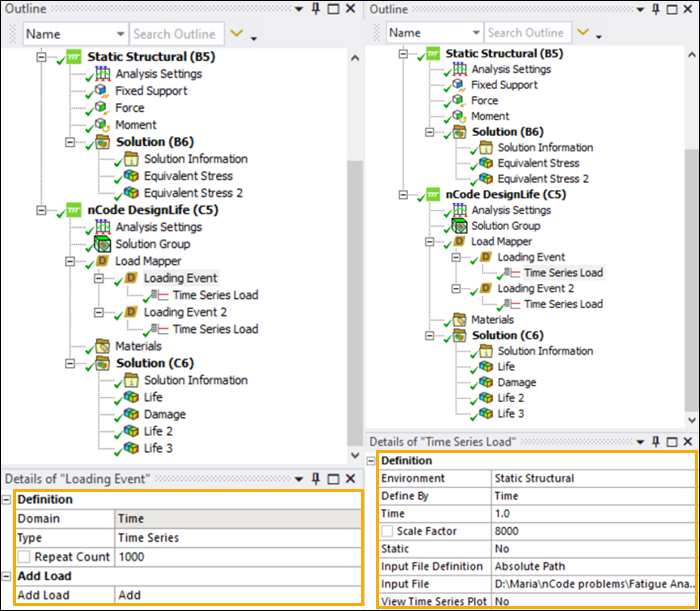 1000and set the following options for the Time Series Load in Loading Event 1:Environment: This selects the system from which the .rst file, which will be picked for the nCode fatigue analysis. Select the environment so that the results of the static system system are picked.