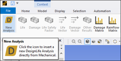 From the DesignLife toolbar, select to insert a new DesignLife analysis directly from Mechanical.